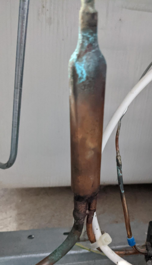 - Woher kommen die grünlichen und beigen Verfärbungen an den Rohren auf der Rückseite des Kühlgeräts?