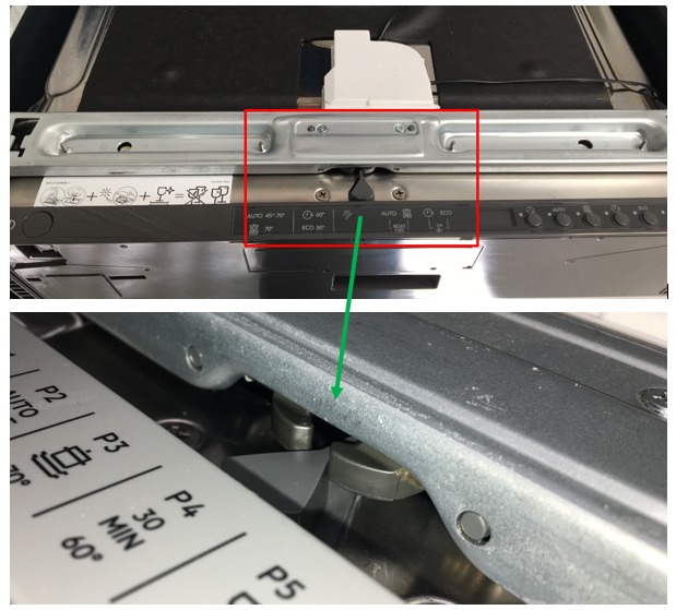 - Oberer Teil des Geschirrspülergehäuses ist nach oben gebogen - der diamant-förmige Keil an der Tür ist im Verhältnis zum Schloss zu tief.