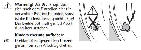 - Überprüfen Sie gegebenenfalls die mechanische Kindersicherung (modellabhängig).