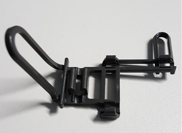 - Der Kunststoffhaken wird in den Oberkorb auf der linken Seite eingeclipst und dient zum Einhängen eines Pflegemittels, wie z.B. Glasschutz oder Duftzitrone für Geschirrspüler.