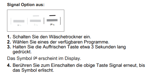 - Bei den Wäschetrocknern ertönt ein akustisches Signal am Programmende und bei Start und Ende der Knitterschutzphase.