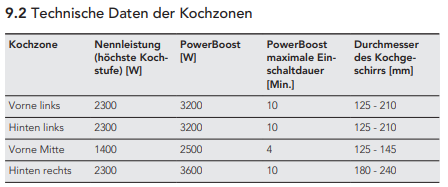 - Beim Induktionskochfeld kann ich nicht alle Kochzonen auf volle Leistung stellen.