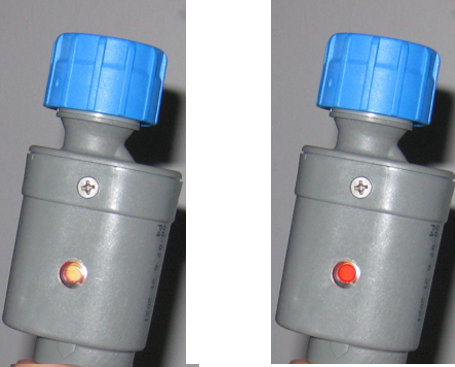 Bild: Sichtfenster AquaControl-Schlauch: links: intakt - rechts: ausgelöst