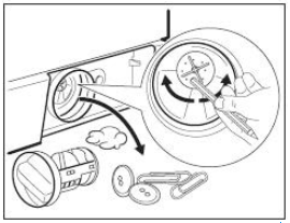 - Überprüfen Sie den Ablauffilter bzw. das Flusensieb bzw. die Fremdkörperfalle wie in der beschrieben (sofern es vorhanden ist).