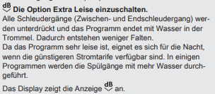 - Mit der Option Spülstopp wird das Wasser vom letzten Spülgang nicht abgepumpt.
