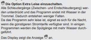 Diese Option kann zum Beispiel genutzt werden, um einen Teil der Wäsche tropfnass zu entnehmen und einen anderen Teil schleudern zu lassen.