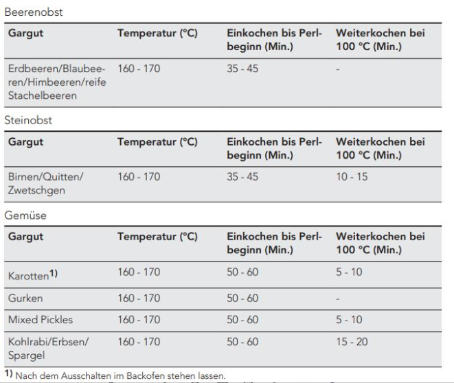 - Wir empfehlen die Gläser ohne gegenseitige Berührung auf eine Fettpfanne in Ebene 1 einzusetzen.